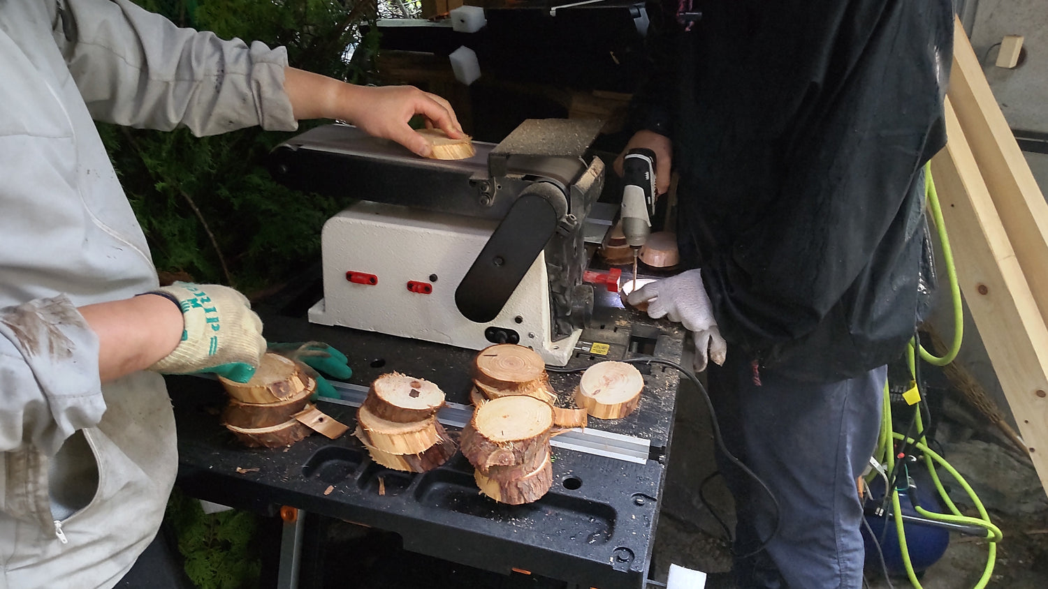 雨の日も、TreeLumberのスタッフは出社します。ミーティングを行ったり木工品を作ったり、室内作業を中心に行います。薪割りや木材加工は、いつもと違った作業なので新鮮な気持ちになります。
